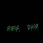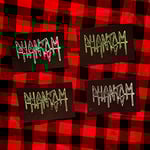 various handmade mcr patches! all patches are printed with white, green, and/or red heat set ink on black canvas
